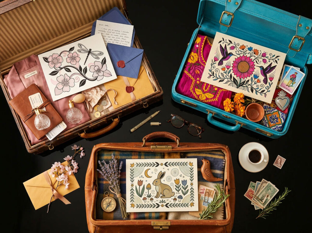 Every week a new destination drops. New flower. New story. New patterns. Like a mystery box — except what's inside is something you made.