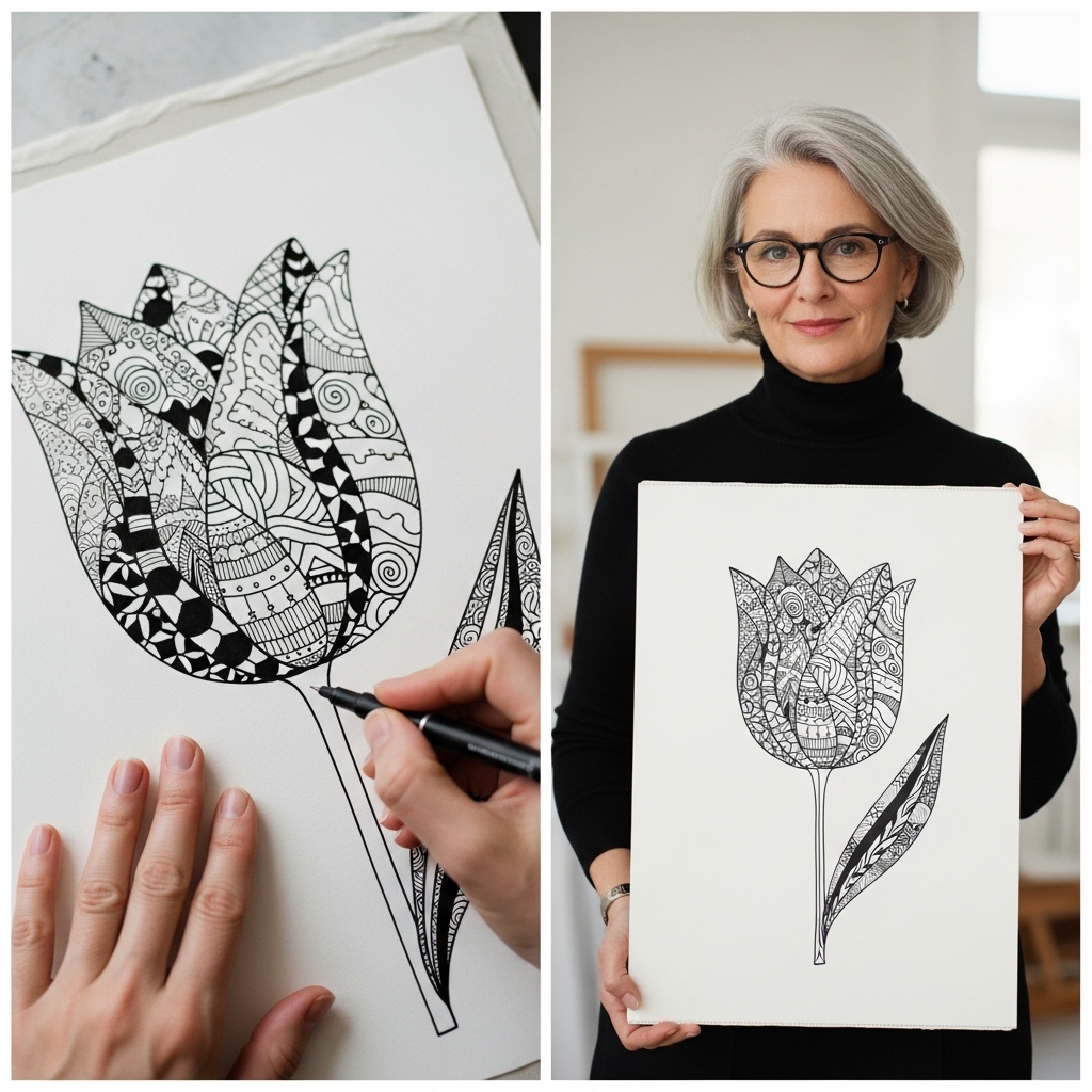 Here’s the weird thing about flowers: they’re just simple shapes in disguise. Add the right pattern inside, and even the ugliest sketch suddenly looks expensive. Once you see it, you can’t unsee it.”