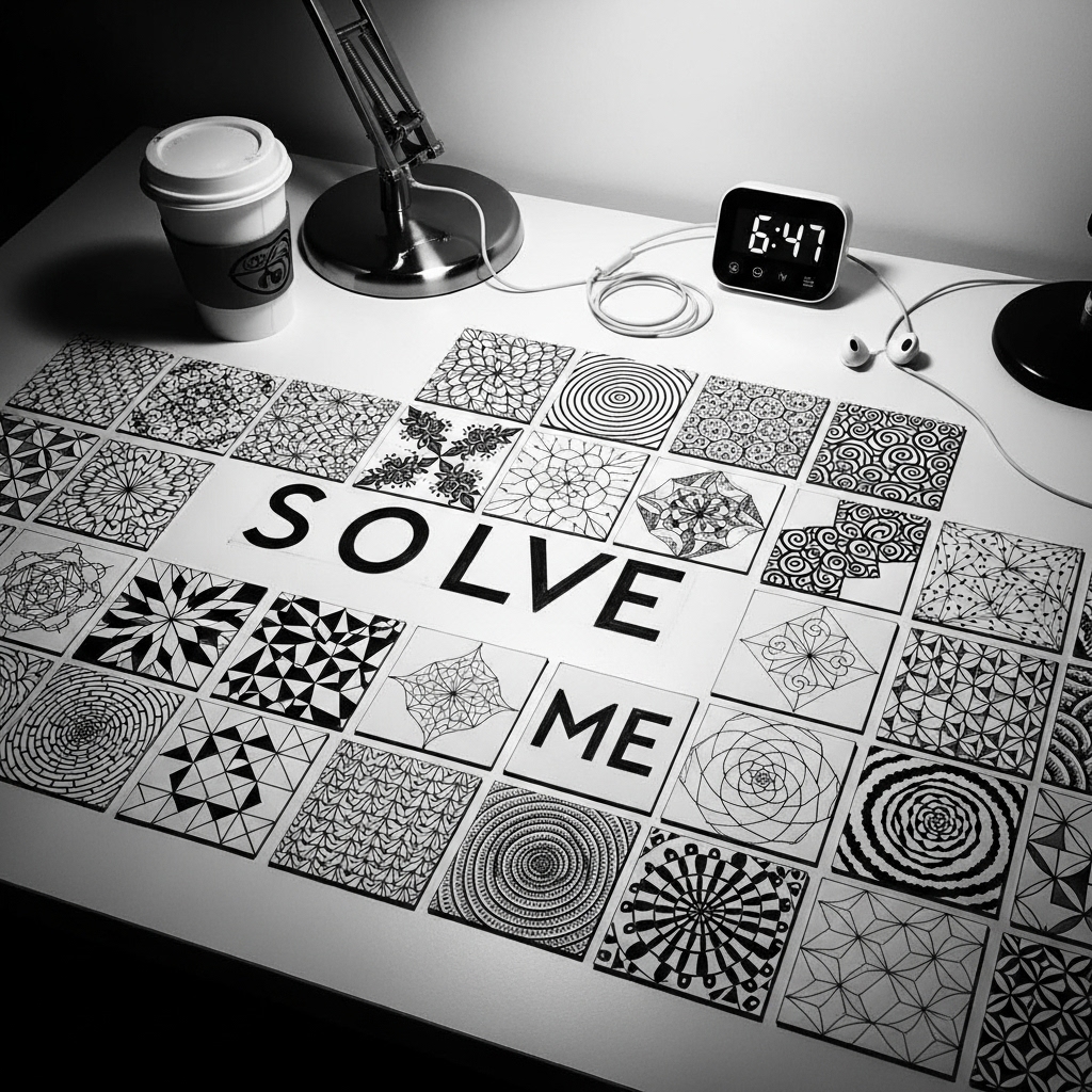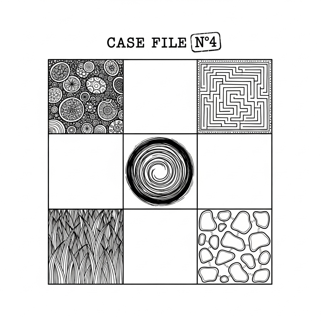 You draw patterns while I tell you about murder. That’s it. But here’s what happens: When your hands are busy with repetitive motions, your brain does something incredible – it starts seeing connections everywhere.