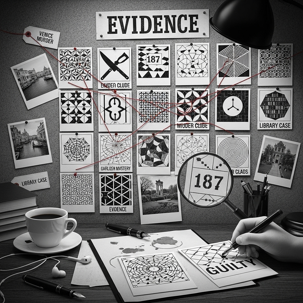 In 7 minutes, you’ll create something that looks like abstract art but works like a detective’s brain. The killer’s name will emerge from your patterns like those Magic Eye posters – once you see it, you can’t unsee it.
