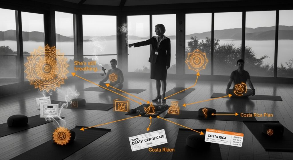 Ananda DID fake her death. The body in child’s pose was a mannequin from her “Mindful Anatomy” class, dressed in her clothes, sprayed with her essential oil blend. She’d spent months planning this elaborate exit, even recording farewell videos about “transcending physical form.”