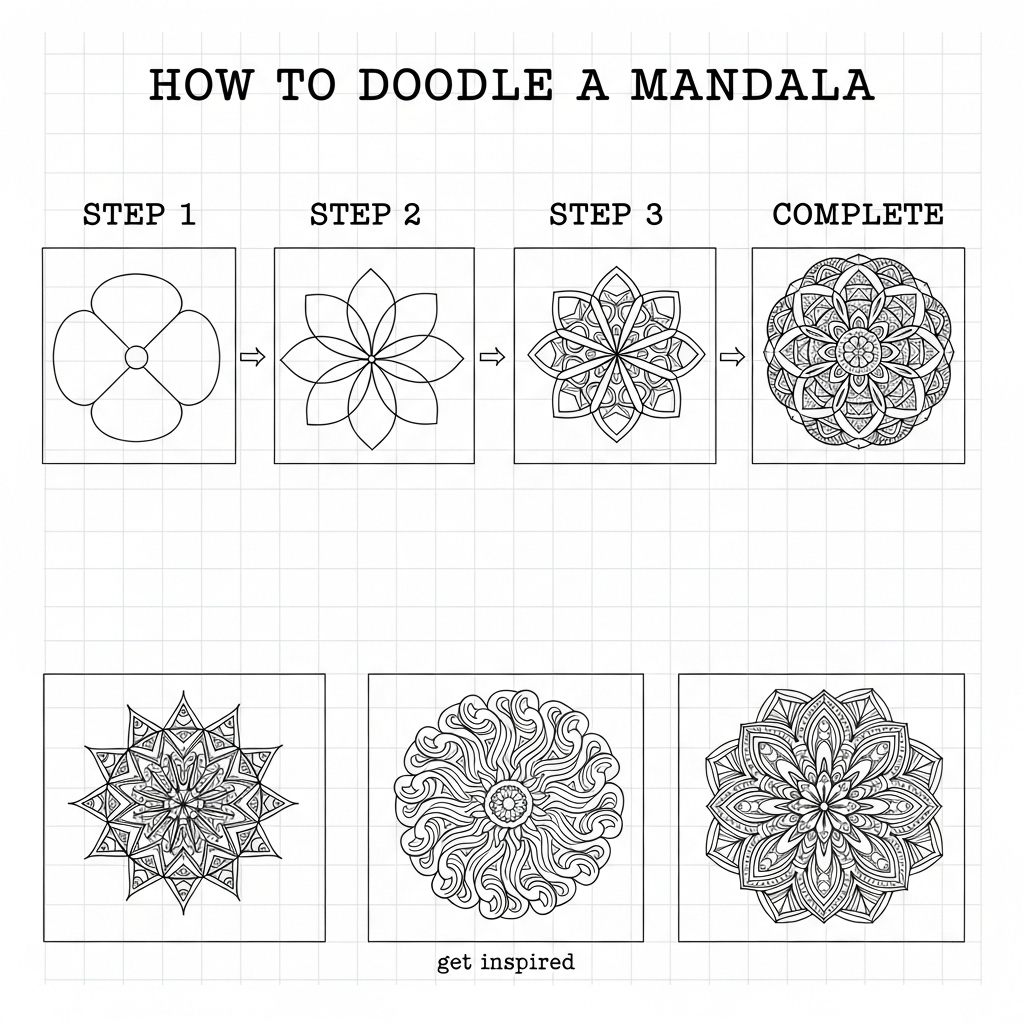 Fourth empty square (bottom-center): Write “JS” – her real initials, hidden in every mandala she ever created, like a signature.